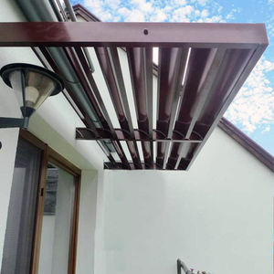 Horizontálne slnolamy: Predstavte si ich ako elegantné, pevné hliníkové „šilty“ umiestnené priamo nad vašimi oknami alebo dverami. Ich hlavnou úlohou je odtieniť prudké poludňajšie slnko, ktoré svieti zvrchu, zatiaľ čo vám ostáva úplne voľný a ničím nerušený výhľad. Je to ideálne riešenie, ak chcete dom ochrániť pred prehrievaním, ale zároveň nechcete mať okná zakryté žalúziami.